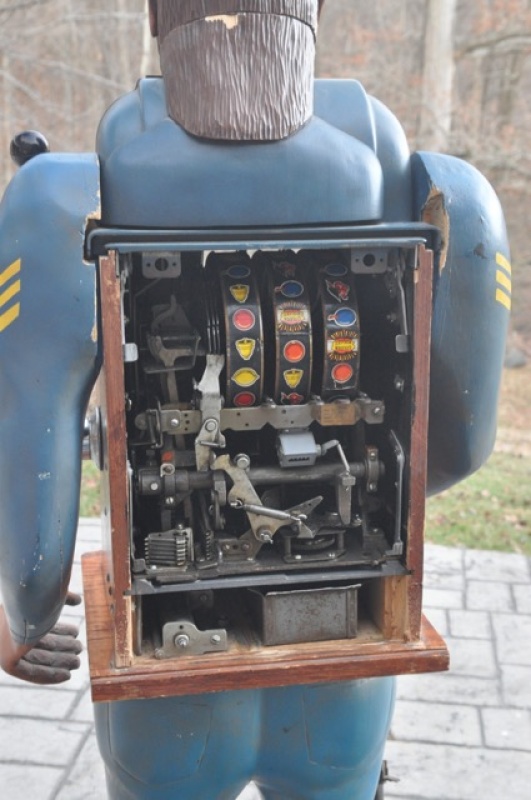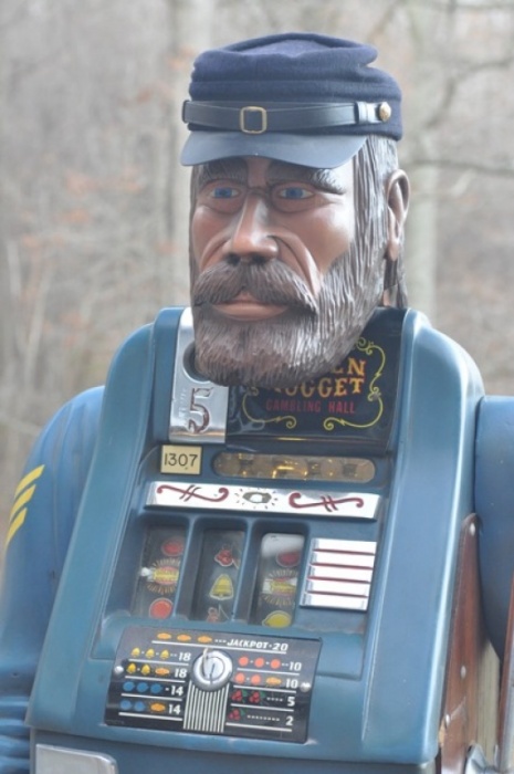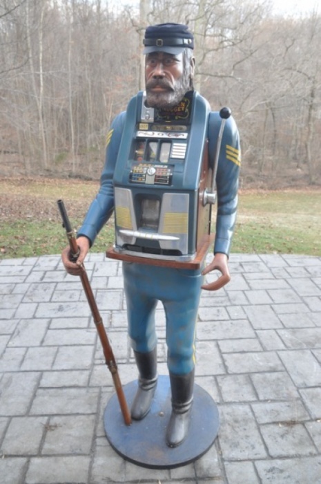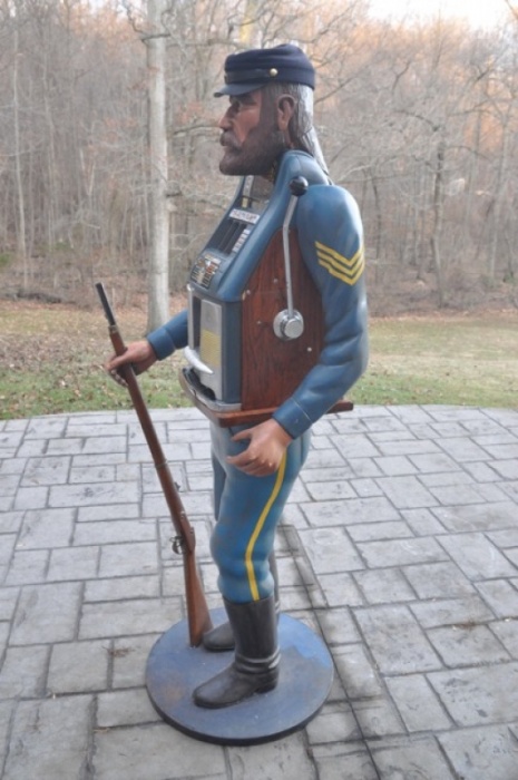 Carved Union Soldier w/ Original 5cent Golden Nugget Mills High Top, Originally Carved for Steve Wynn and displayed in the Vegas Golden Nugget