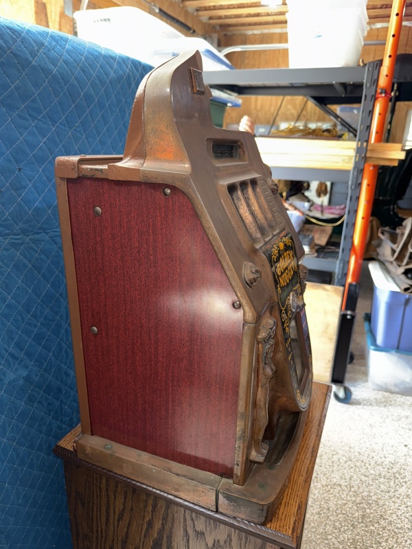 If you want maximum presence, maximum denomination, and maximum attitude, this is it. The 50-cent Golden Nugget was built for serious play and serious players, and today it stands as one of the most impressive vintage slots you can own. A 50-cent slot in its day was a high-roller machine. This would have lived in a prime casino or gambling hall location, pulling in players who wanted bigger action and bigger payouts. That history is exactly what gives this machine its commanding presence today.