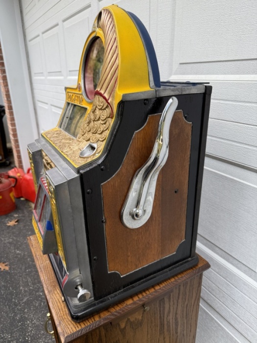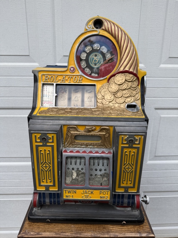 For the serious collector, the museum curator, or the connoisseur of mechanical marvels—we present the near-mythical, 25-Cent Watling "Rol-A-Tor" from 1935! This is not a "Rol-A-Top." It is the legendary machine that preceded it, produced for only a fleeting moment in history before a legal challenge forced a name change. Owning this piece is holding a tangible moment of coin-op history.