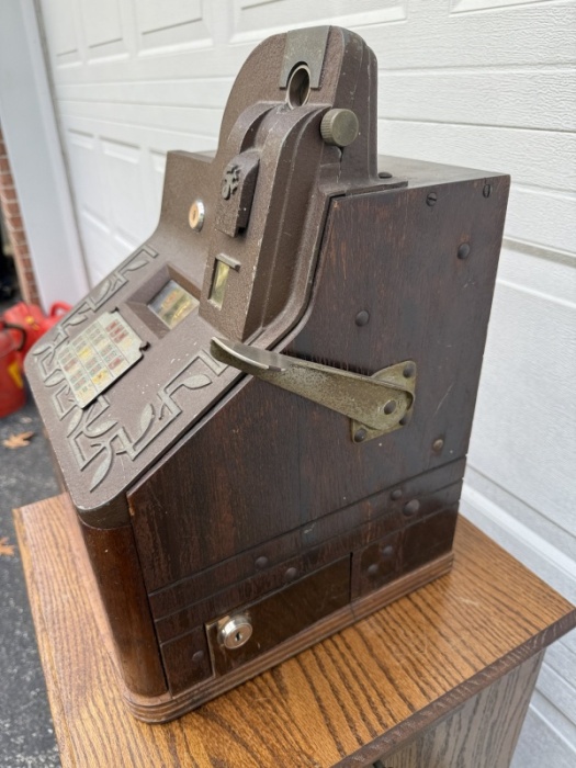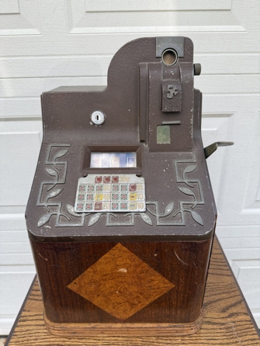 We have the sleek, stylish, and historic desk-model marvel that is a testament to Prohibition-era ingenuity: The Mills Q.T. Smoker! Manufactured by the legendary Mills Novelty Company of Chicago in the mid-1930s, the "Q.T." (Quarter-size/Quick Transaction) line revolutionized the industry, and the "Smoker" model is a particularly charming and desirable variant. This is more than a machine; it's a magnificent piece of Americana, perfectly sized for your private collection, bar top, or executive desk.