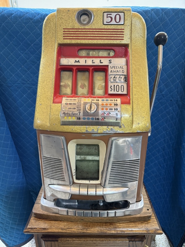 This is the machine that says you play to win! We are offering the highly sought-after, commanding, and historically significant 50-Cent Mills High Top—a genuine piece of high-stakes casino action from the post-war era! The High Top, produced by the legendary Mills Novelty Company of Chicago, is famous for its powerful stance and ultra-reliable mechanism. When it comes in the rare 50-cent denomination, it transitions from a collectible to an investment-grade showpiece.
