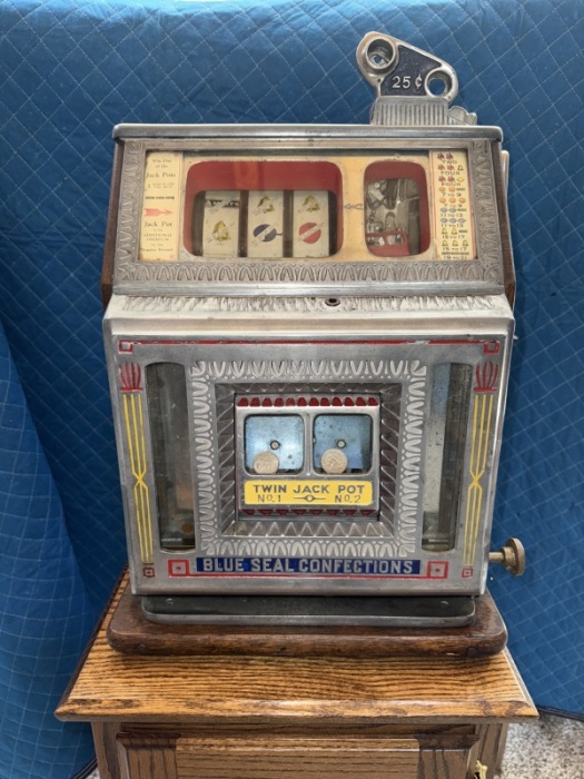 The Watling "Blue Seal" is one of the company's foundational and longest-produced designs, a powerhouse machine that defined the look of slots for over a decade. When you specify the 25-Cent Quarter Denomination and the Vendor feature, you get a premium machine that perfectly captures the high-stakes history of the Prohibition era!