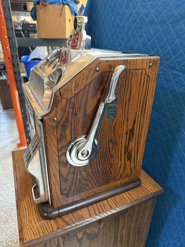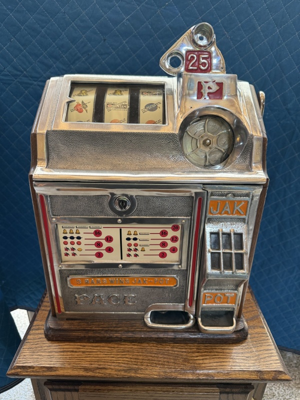 We are proud to present an exceptional piece of vintage coin-op machinery: The 25-Cent Pace "Bantam" Slot Machine! While the Bantam is famous for being a small, countertop machine, the quarter (25¢) denomination elevates this model from a charming collectible to a premium, high-stakes artifact of the post-war era!